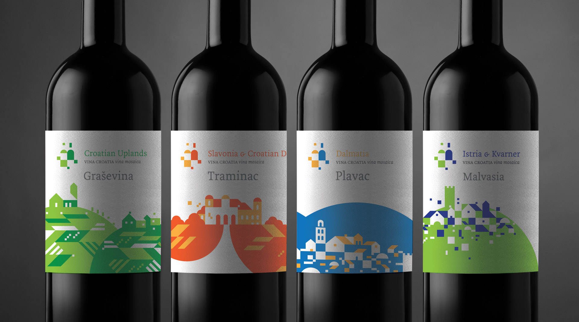 Branding project of Croatia as a wine destination. Design of identity system for marking Croatian wine regions and of joint appearance of Croatian wine-makers in foreign markets.